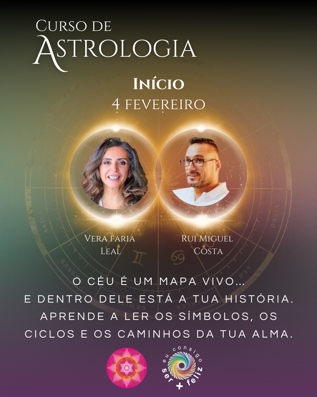 A Astrologia é uma Linguagem riquíssima, que nos fornece um diagnóstico profundo, imediato de: “de onde vimos, onde estamos, para onde vamos”, pavimentando o Caminho com a informação que nos liberta, para podermos ser a nossa melhor versão. Estudar Astrologia é um privilégio, a alegria de pertencer a milhões de Almas que ao longo da História, partilharam amor e formas de ser comunidade, através desta Escrita Divina. Hoje, há inúmeros ramos da Astrologia – mundial, relacional, vocacional, financeira, médica – sendo o seu potencial terapêutico e de autodescoberta, muito potenciado pela Astrologia Psicológica, que também praticamos. Conhecermo-nos a nós e aos outros, aos eventos do nosso tempo através da Astrologia, é uma experiência sem igual, que nos permitir navegar os “para quês” do que nos acontece, com cada vez mais serenidade, autenticidade, integração e compaixão. A Astrologia conecta-nos com o todo, ensina-nos a responsabilidade individual pelo estabelecer das correctas relações humanas na terra. Começando por nos responsabilizar por nós mesmos, pelo desenvolvimento dos nossos dons e talentos, pela harmonização das nossas tensões, pelo abraçar da nossa unidade. Quanto mais se estuda Astrologia, mais se ama, é uma sabedoria fascinante e inesgotável! Por tudo isto e porque lhe oferecemos a nossa experiência profissional de décadas de trabalho com a Astrologia, convidamo-lo a vir connosco, nesta Viagem sacra, dinâmica e iniciática, ao encontro de Si!